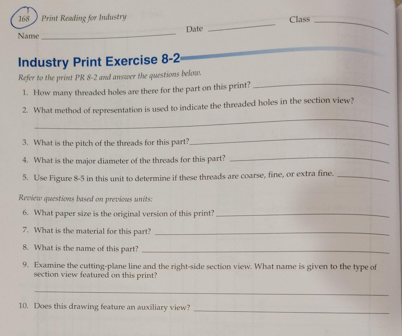 Solved 168 Print Reading For Industry Class Date Name Chegg Com